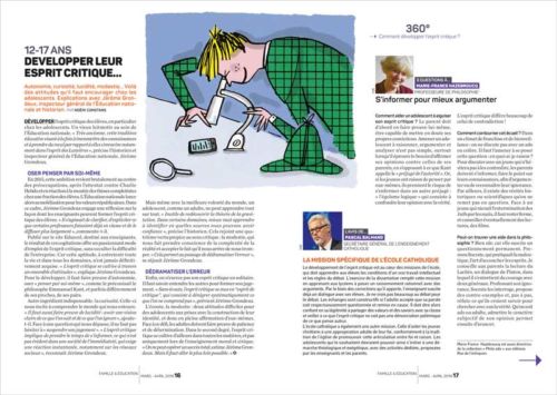 Famille & éducation est le magazine de l’Apel. Diffusé tous les deux mois à ses adhérents, il est le magazine de la scolarité et de l’éducation et apporte des informations pratiques, des conseils, des témoignages et des pistes de réflexion sur l’éducation et la scolarité des enfants. Chaque numéro est réalisé par Rampazzo & Associés qui en assure également le conseil à la rédaction. Ce mois-ci, Famille & éducation nous explique comment aider nos enfants à développer leur esprit critique.