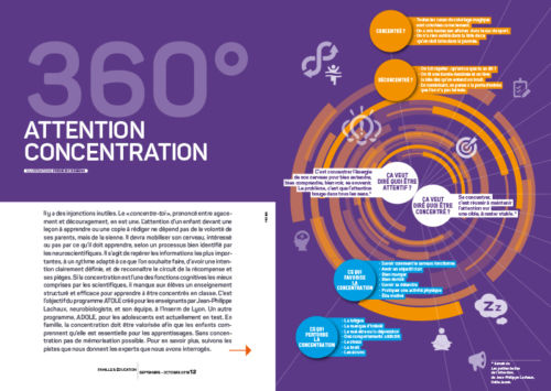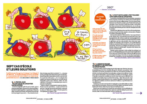 Réalisé par Rampazzo & Associés qui en assure également le conseil à la rédaction, le magazine de l’association des parents d’élèves de l’enseignement libre (APEL) poursuit sa montée en gamme pour la qualité de ses informations. Le numéro qui vient de paraître approfondit la question de la concentration des élèves. Il n’y a pas de fatalité au manque de concentration que parents et enseignants reconnaissent comme l’une des causes du manque de réussite scolaire. Pourtant être attentif et concentré est indispensable pour bien apprendre.