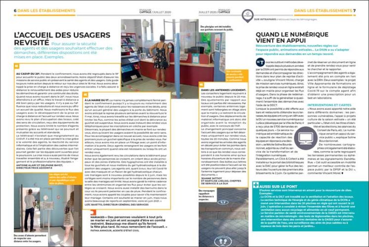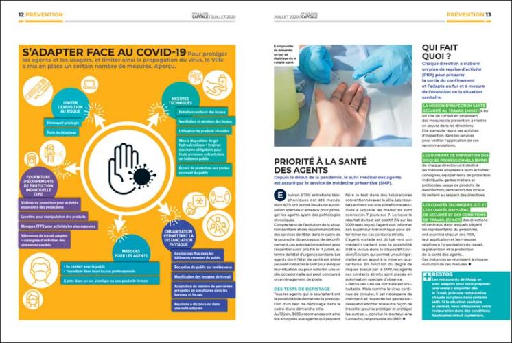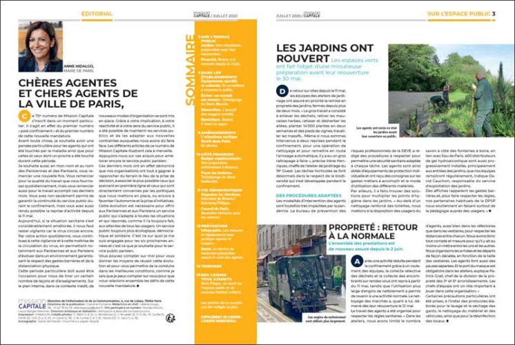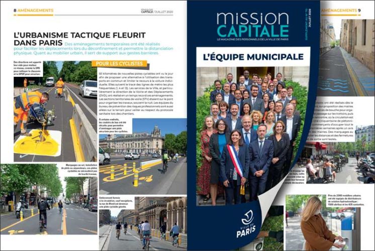 Mission Capitale, le magazine des personnels de la Ville de Paris revient, dans son dernier numéro, sur toutes les actions prises par la Ville afin de répondre au mieux aux nécessités que réclame la crise sanitaire. Il est accompagné d’un supplément de quatre pages qui présente la nouvelle équipe municipale.