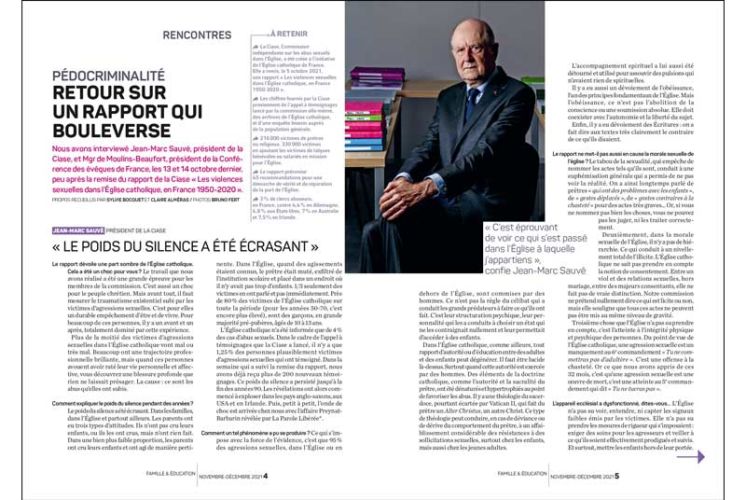 Le magazine de l’Association des parents d’élèves de l’enseignement libre (APEL) vient de paraître. Un premier sujet consacré au rapport commandé par l’Église de France remis le 5 octobre dernier. Et notre grand sujet 360° qui traite des différentes formes de peur qui touchent les enfants.