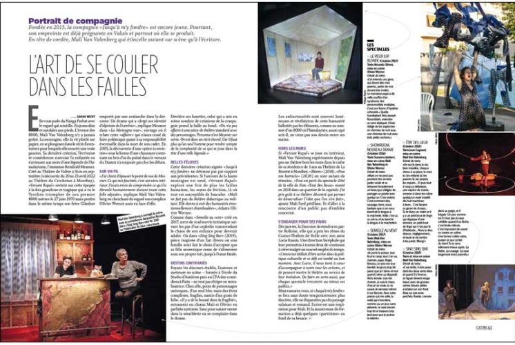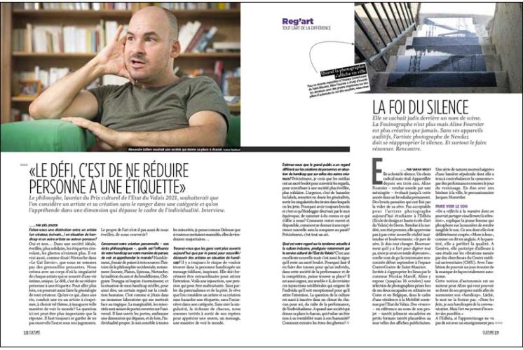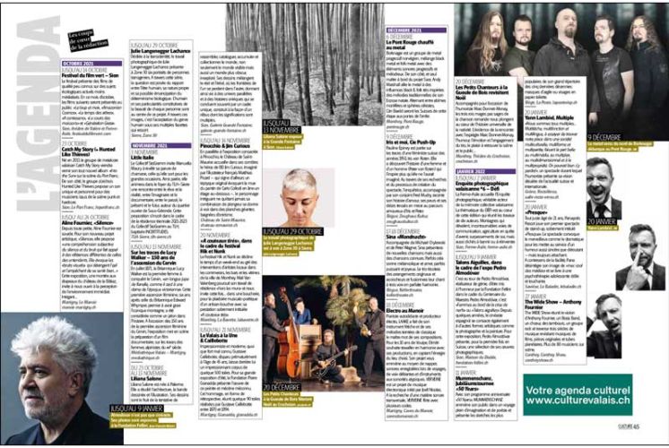 Le supplément « Culture » du Nouvelliste se pose la question de l’engagement des artistes, des lieux institutionnels en Valais et quel en est leur « combat ». Faire bouger les lignes en quelque sorte. Un numéro, comme toujours, riche d’initiatives et d’énergie. En voici quelques pages.