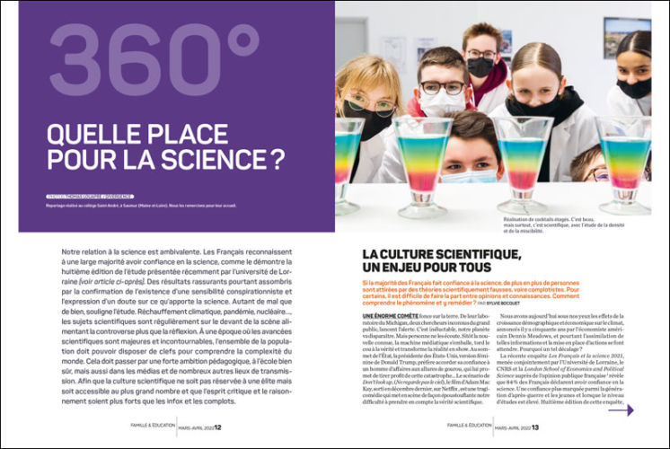 Réalisé par Rampazzo & Associés qui en assure également le conseil à la rédaction, le magazine de l’association des parents d’élèves de l’enseignement libre (APEL) propose un dossier en résonnance avec notre relation ambivalente à la science. Quelle place lui donner dans l’éducation des plus jeunes ?
